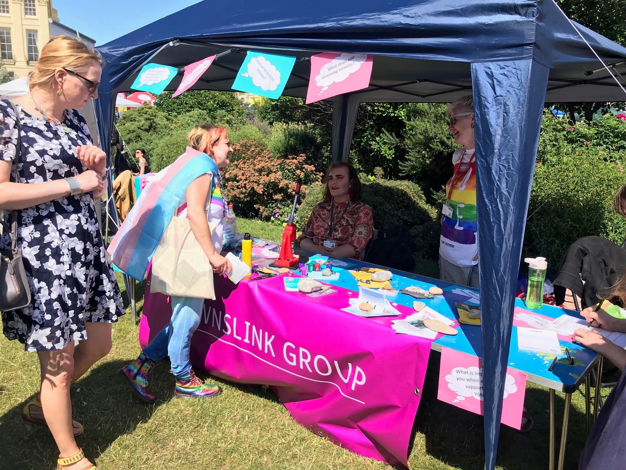 This year YMCA YAC and YMCA WiSE attended our first ever Trans Pride! YMCA YAC and YMCA WiSE recognised the importance of showing our support as allies to the Trans, Non-Binary, Intersex and Gender (TNBI+) variant community, hosting a stall offering information, advice, signposting and BADGE MAKING! We wanted to demonstrate the work we do to make our clients in the LGBTQ+ community feel accepted and safe when accessing our services.