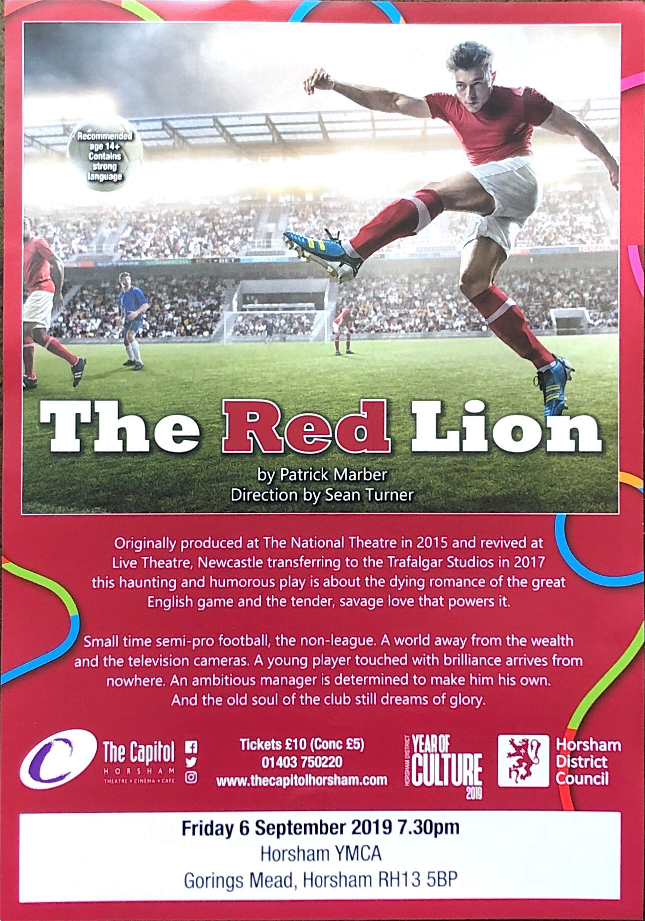 As part of Horsham’s Year of Culture, Horsham YMCA Football Club are hosting a play about football, The Red Lion, at their football ground, Gorings Mead.