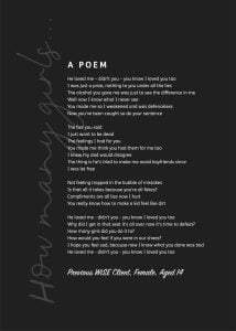 YMCA WiSE will also be posting artwork and poems created by previous WiSE clients on their social media channels. To find out more or support the project please find them on Twitter, Facebook and Instagram.