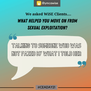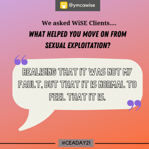 A group of clients from our YMCA WiSE project have come together to create social media posts around the theme ‘what helped me move on from child sexual exploitation?’. They made these powerful statements to reach out to other young people who may be experiencing exploitation, and to professionals who work with young people.